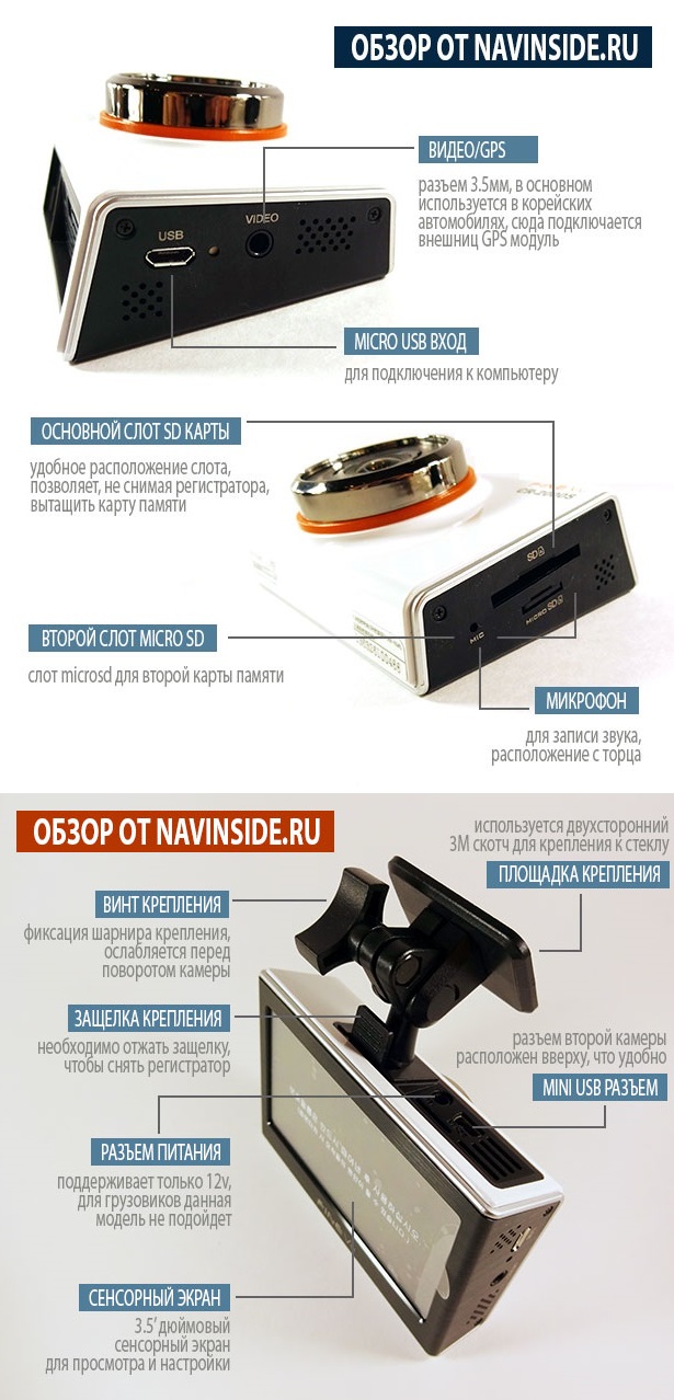 Мы не станем говорить, что Корейские видеорегистраторы лучше Тайваньских и Китайских, мы не станем говорить, что Ambarella A7 лучший видеопроцессор, а Sony CMOS сенсор делает видео кристально четким, мы не будем превозносить представленную модель. Но мы обязаны сообщить Вам, что впервые в одном гаджете собраны сразу 5 новых технологий! Два FULL HD 1920*1080 Мп канала видеозаписи с Sony CMOS сенсором у обеих камер, технология WDR для безупречной съемки ночью, сенсорный монитор большой диагонали 3,5", два слота под карты памяти с функцией копирования видео файлов, режим предупреждения о стационарных камерах полиции, GPS/Глонасс позиционирование (местоположение и скорость), все это в алюминиевом корпусе на поворотном креплении. Более детальную и подробную информацию Вы сможете взять из видеообзора, представленного на нашем сайте. Как итог всего лишь добавим, что FineVu CR-2000S все таки лучший видеорегистратор, превосходящий всё существующее среди аналогичных устройств на момент 2014 года.