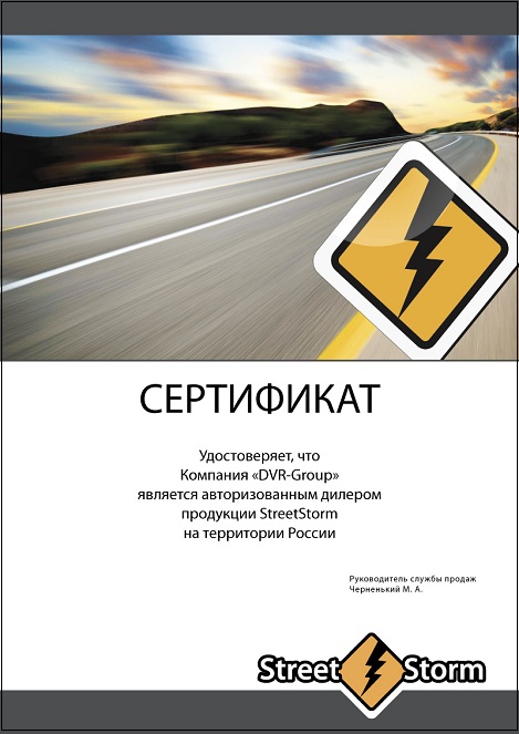 Обращаем Ваше внимание, что при покупке в нашем магазине на все видеорегистраторы Street Storm мы можем предоставить сертификат о соответствии EAC («Eurasian Conformity», «Евразийское соответствие») – это единый знак обращения товаров, который свидетельствует, что продукция прошла и удовлетворяет все принятые технические регламенты на территории Таможенного союза ЕврАзЭС. Данный сертификат может быть предъявлен сотруднику ГИБДД в случае ДТП для приобщения видеозаписи к материалам происшествия. Убедительная просьба, сделать запрос у менеджера при оформлении заказа. Без соответствующей просьбы сертификат не предоставляется.