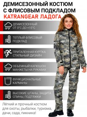 Женский демисезонный костюм KATRAN Ладога – это универсальная модель для всех любительниц рыбалки и туризма. Костюм состоит из брюк и куртки анатомического кроя. В качестве основного материала используется современная ткань полофлис. Верх ткани выполнен из влагозащитного материала дюспо, который великолепно защищает от дождя и ветра, а внутренний слой – это флис. Благодаря такому сочетанию костюм великолепно защищает вас в любых погодных условиях.